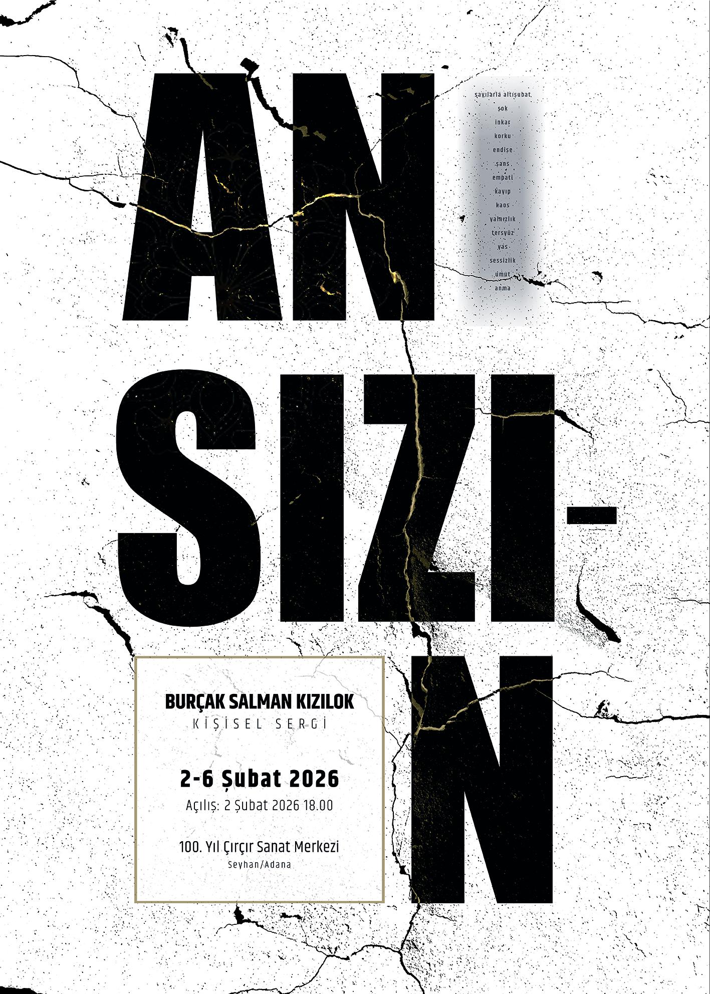 Fakültemiz öğretim elemanlarından Öğr. Gör. Dr. Burçak Salman Kızılok’un “Ansızın” isimli kişisel sergisi 2-6 Şubat tarihleri arasında 100. Yıl Çırçır Sanat Merkezinde ziyaret edilebilecektir.